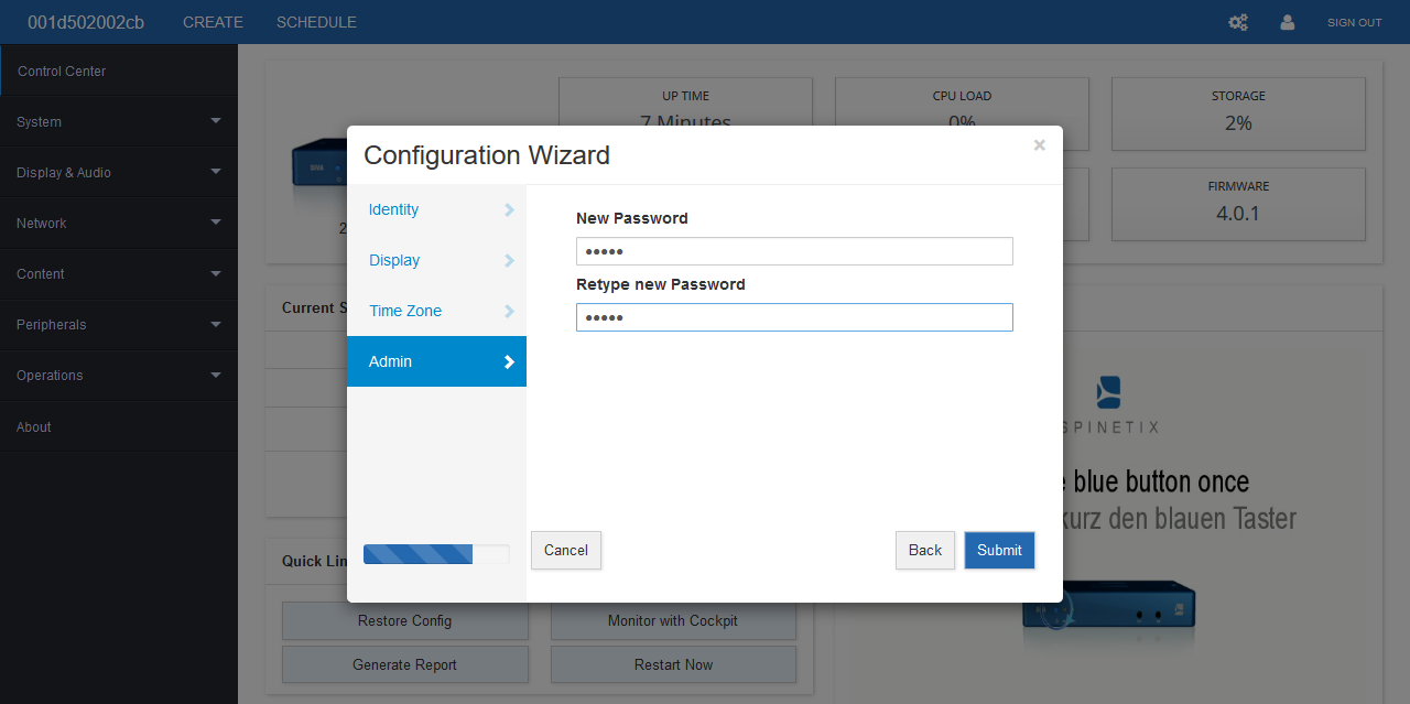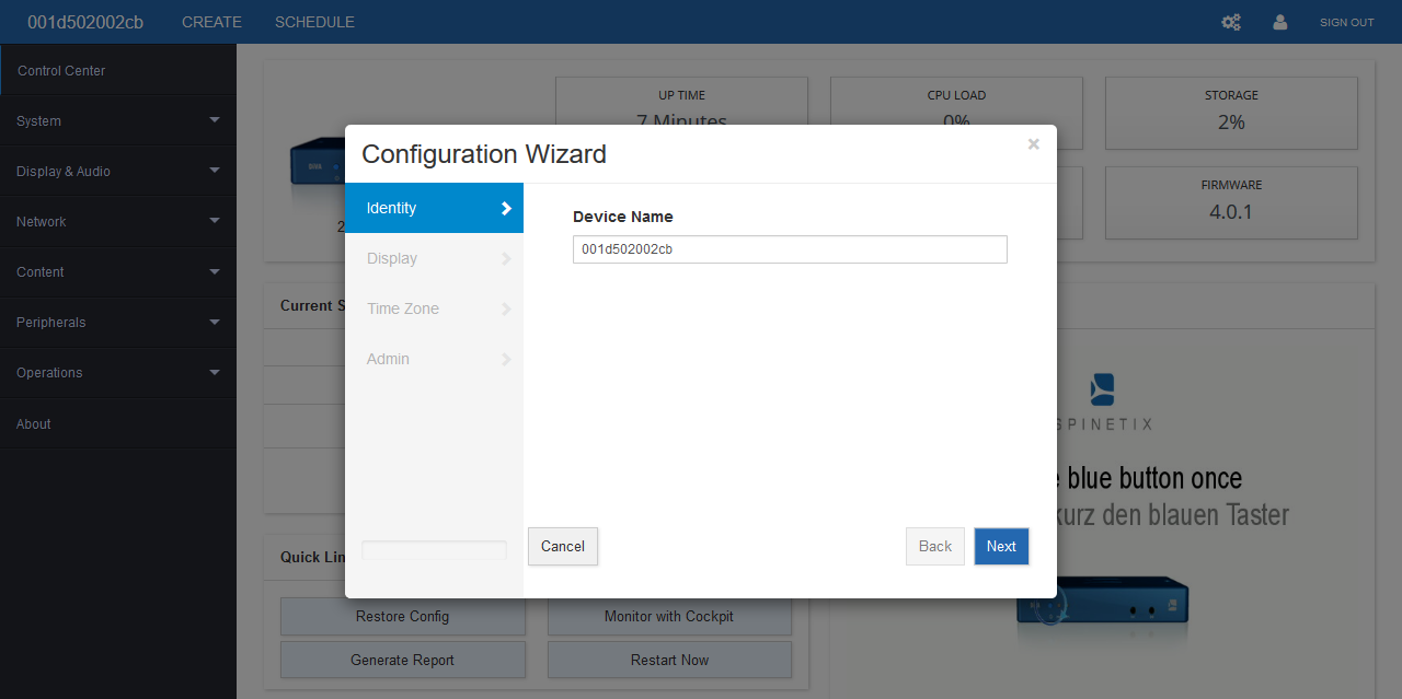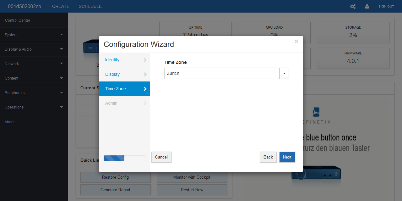 Une fois cette serie de manipulations fait, vous accédez à l'interface d'administration du boitier Spinetix.